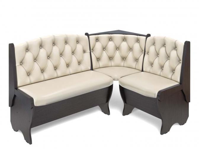 Скамья кухонная угловая Орхидея Люкс венге/милк - стильное и функциональное дополнение для современной кухни. Модель с двумя удобными ящиками для хранения кухонных принадлежностей и мягкими сиденьями со спинками, оформленными элегантной каретной стяжкой, обеспечит комфорт и порядок.