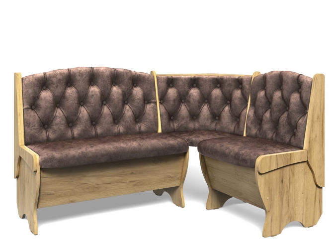 Скамья кухонная угловая Орхидея Люкс дуб крафт золотой/коняьк - стильное и функциональное дополнение для современной кухни. Модель с двумя удобными ящиками для хранения кухонных принадлежностей и мягкими сиденьями со спинками, оформленными элегантной каретной стяжкой, обеспечит комфорт и порядок.