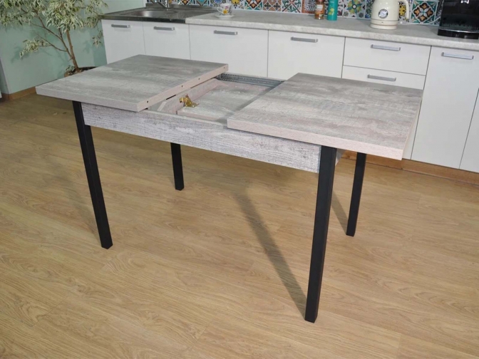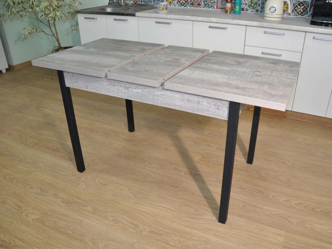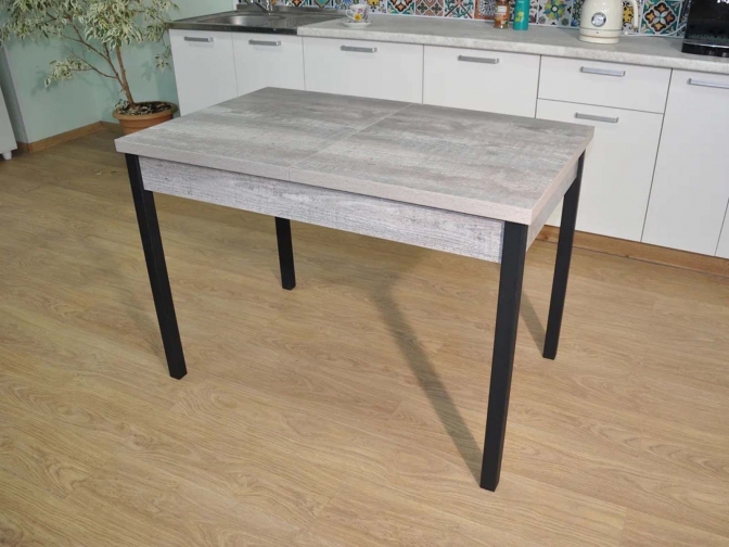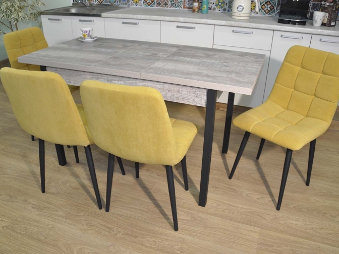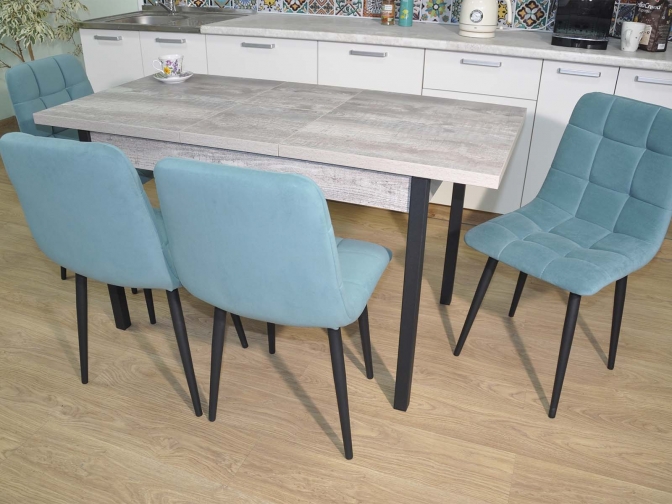 Обеденная група состоит из: Стол обеденный раскладной Колорадо бетон темный+черный + Стул Х мягкий 4 шт.