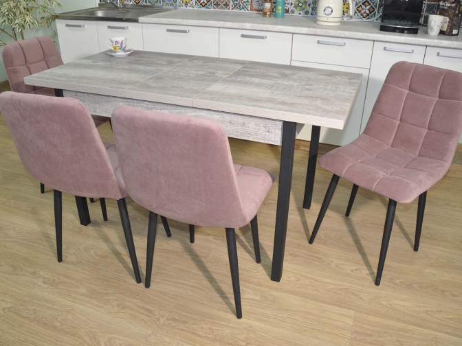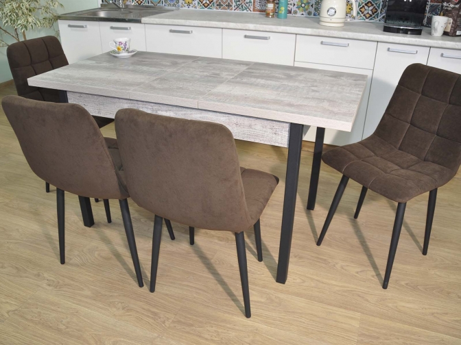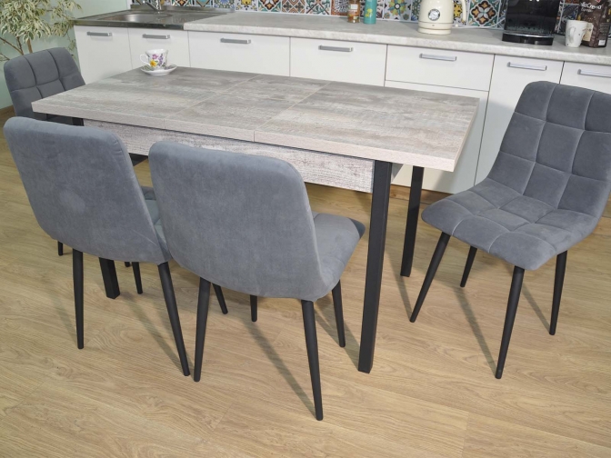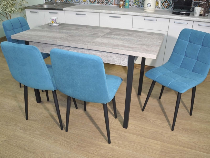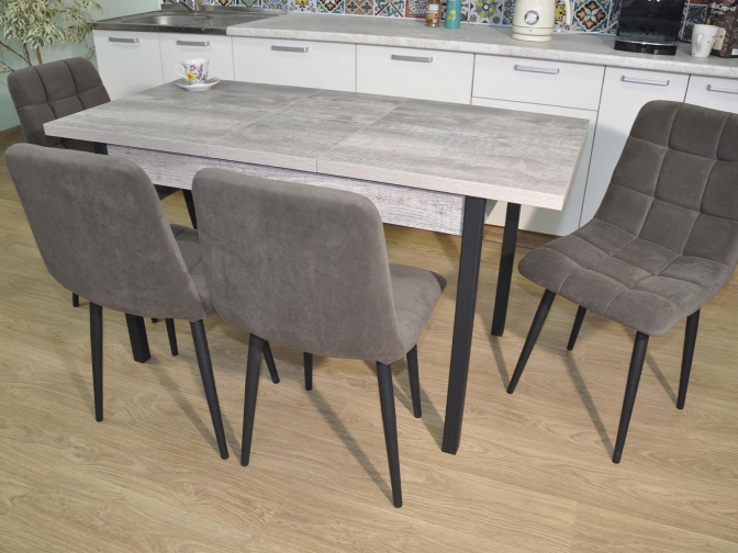 Обеденная группа Колорадо Бетон темный/черный - стол и четрые стула. Идеальное сочетание для кухни или столовой. Практичность и гармония в каждой детали.
