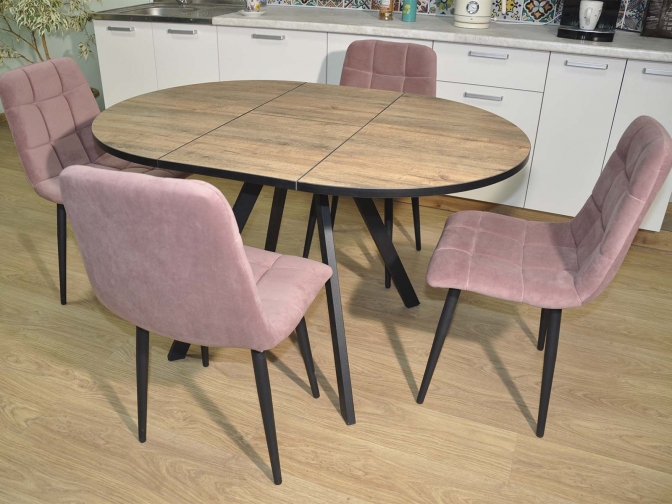 Обеденная група состоит из: Стол обеденный раскладной Нарди дуб веллингтон + черный + черный + Стул Х мягкий 4 шт.