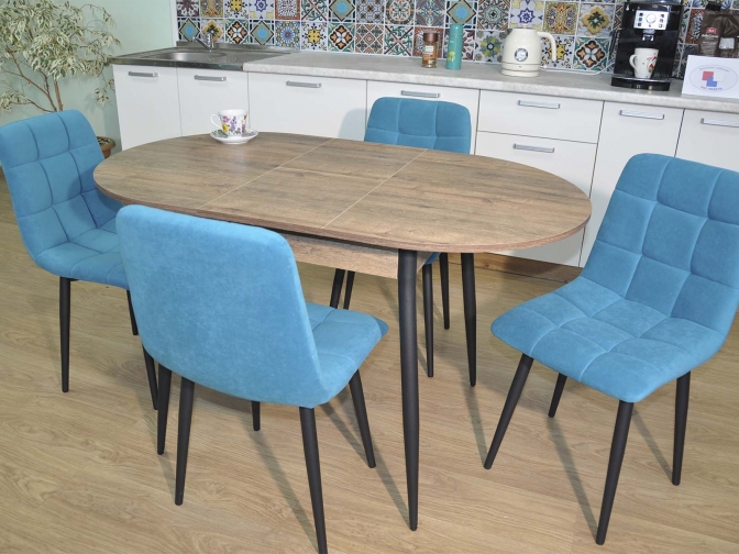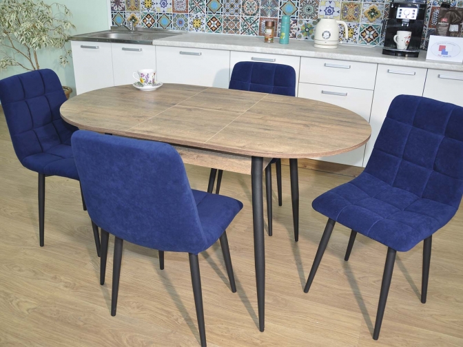 Обеденная группа Стиль-1 Веллингтон/черный - стол и четрые стула. Идеальное сочетание для кухни или столовой. Практичность и гармония в каждой детали.