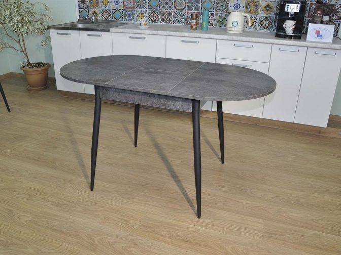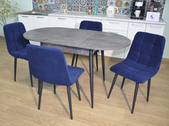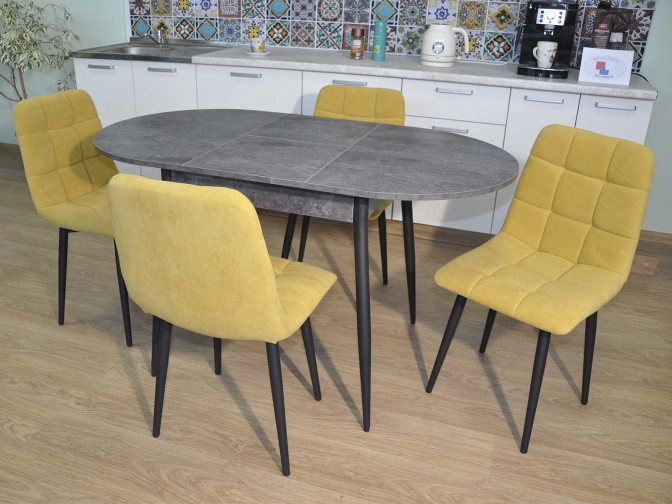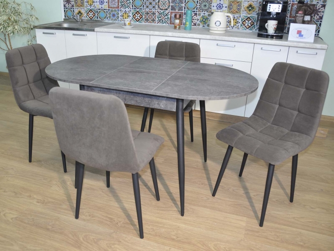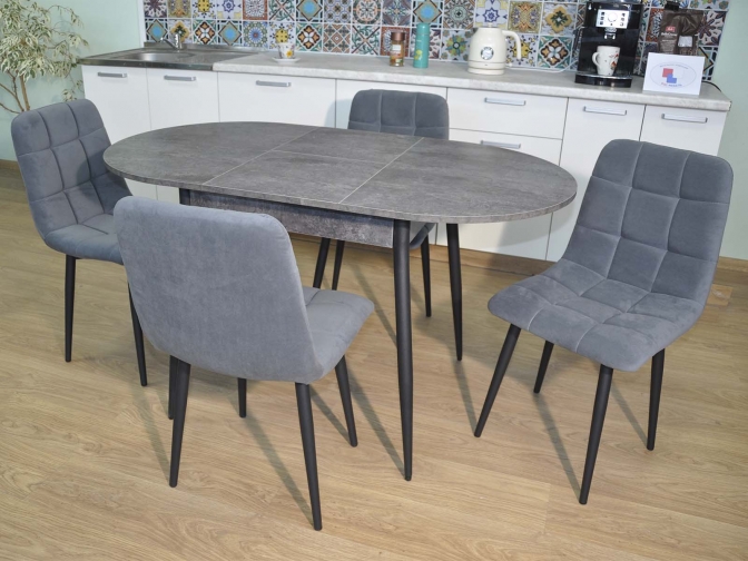 Обеденная група состоит из: Стол обеденный раскладной Стиль-1 Цемент темный + черный + Стул Х мягкий 4 шт.