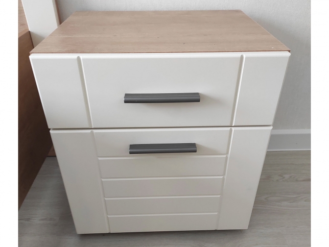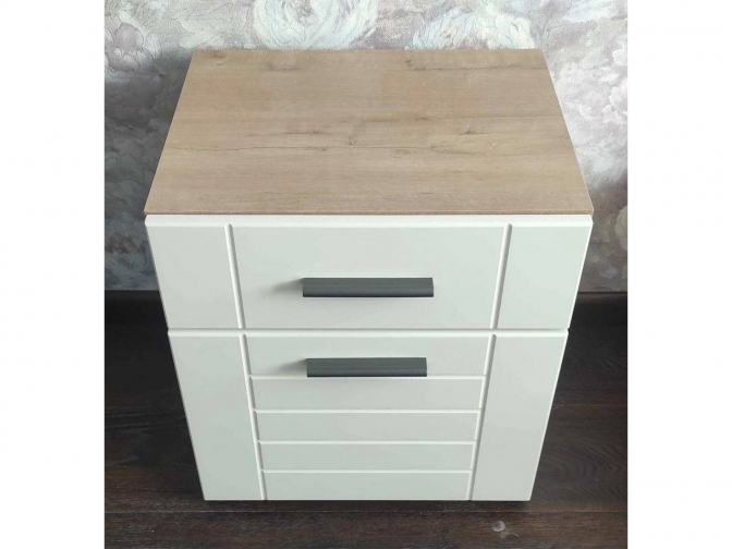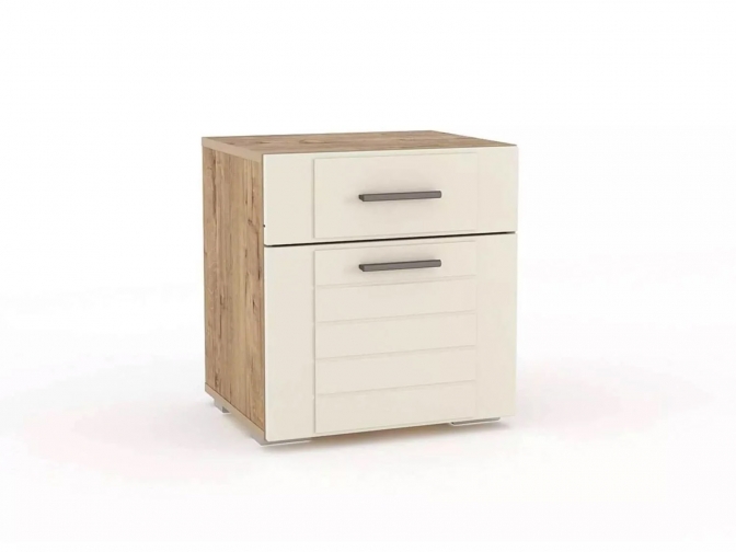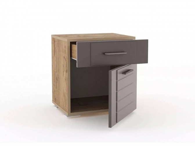 Тумба оснащена двумя зонами для хранения, выдвижным ящиком и дверцей.