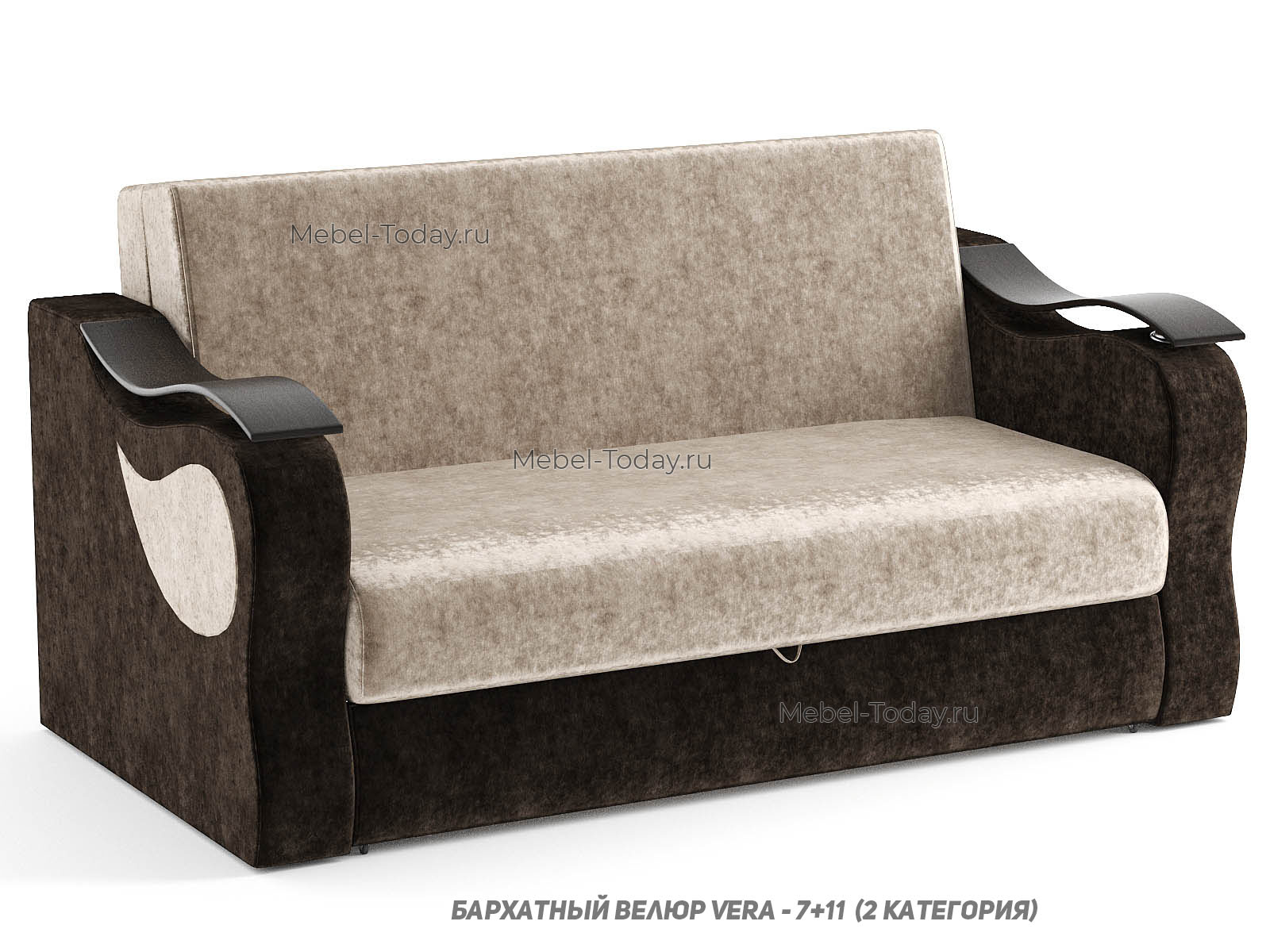 Двуспальный диван Капля 140 см аккордеон с ящиком для белья и МДФ подлокотниками