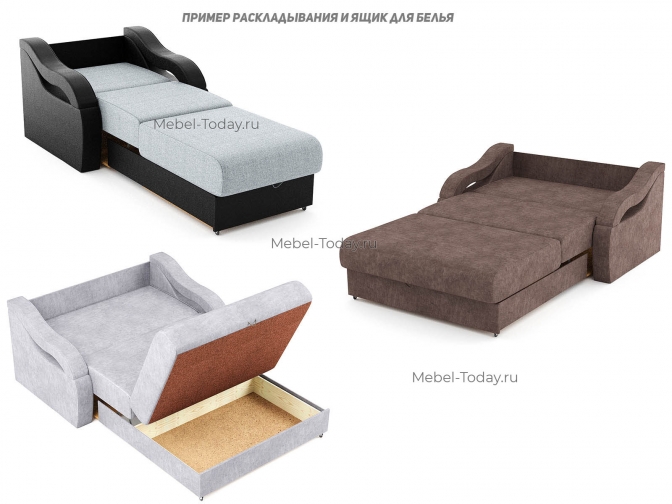 Кресло-диван Сильва 100, механизм аккордеон, спальное место 100х194, ящик для белья