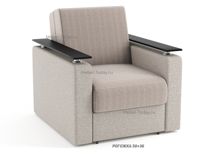 Кресло-кровать Шарк 60х194 см с деревянными подлокотниками, механизм аккордеон, с ящиком для белья