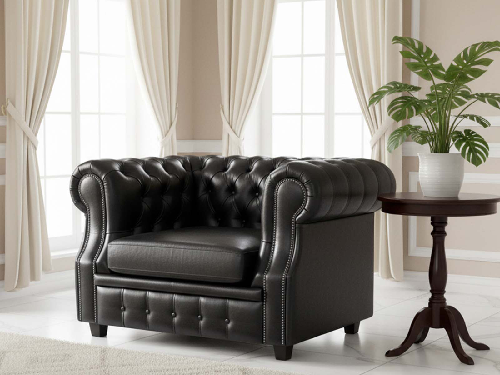 Кресло Честер Лофт черный - это харизматичный акцент, который преобразит и строгий офис, и уютную квартиру, и просторный загородный дом. Его классический дизайн гармонично впишется в любой интерьер, мгновенно повышая его эстетику и комфорт.