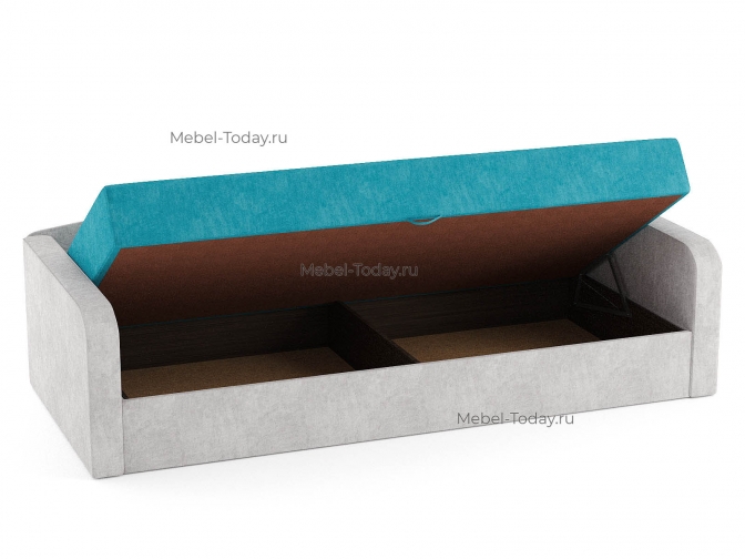 Механизм трансформации: тахта (сиденье поднимается и удерживается. Внутри ящик разделенный на две секции)