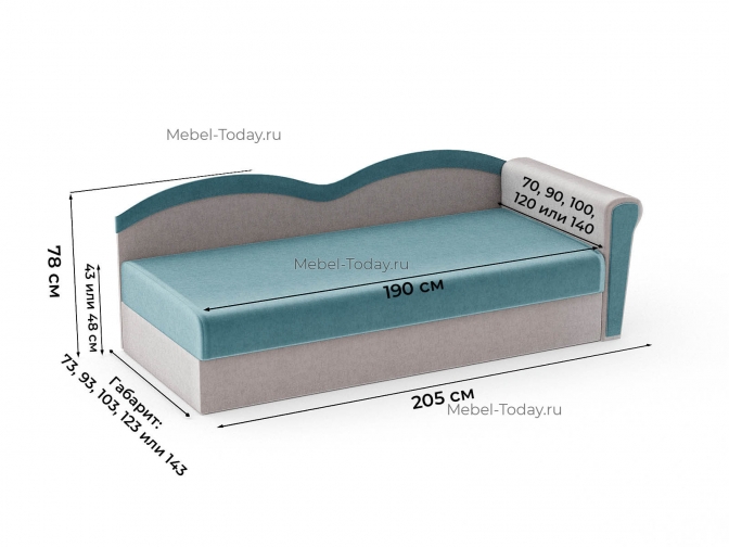 - Спальное место возможно выполнить по ширине с размерами: 70, 90, 100, 120 или 140. Уточняйте у менеджера