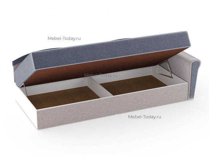 Механизм трансформации: тахта (сиденье поднимается и удерживается. Внутри ящик разделенный на две секции)
