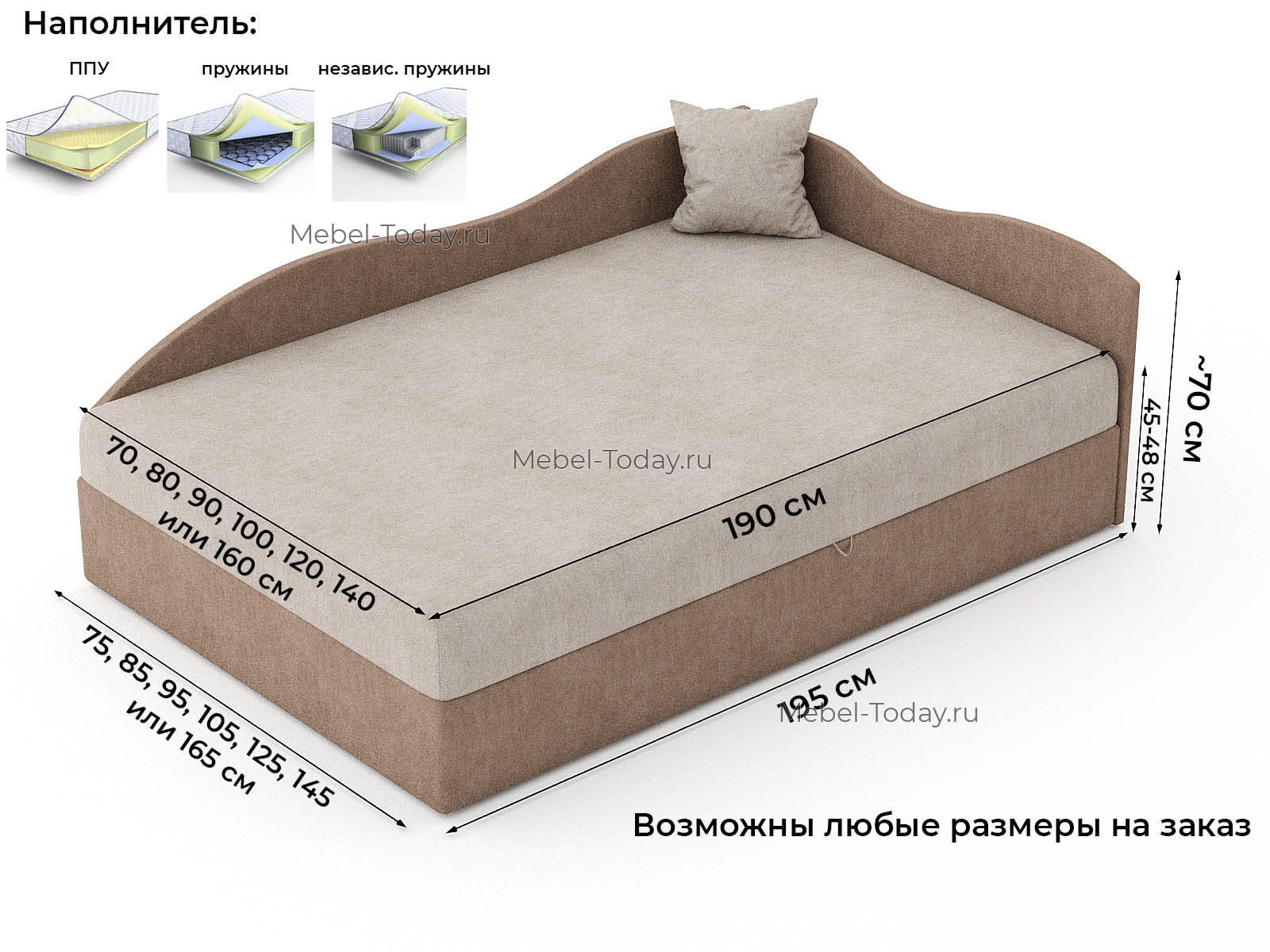 Возможные размеры по ширине: 70, 80, 90, 100, 120, 140 или 160 см