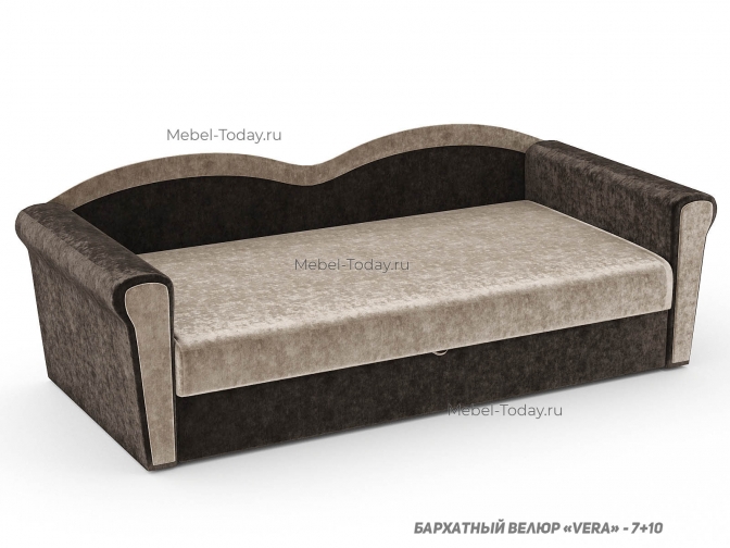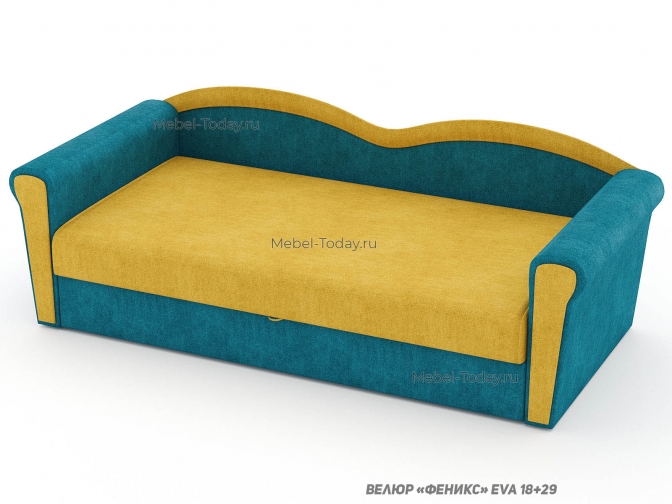 Тахта Багира с фигурной спинкой и ящиком для белья и двумя подлокотниками спальное место 100*190