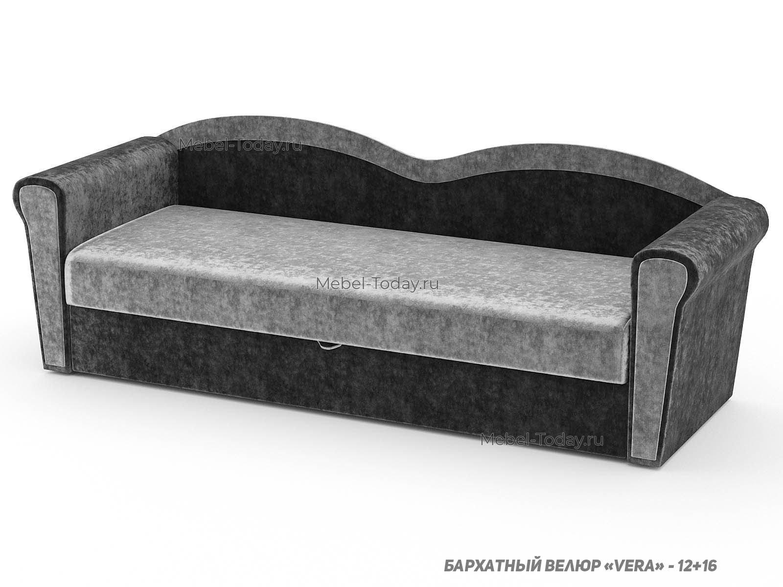 Тахта Багира с фигурной спинкой и ящиком для белья и двумя подлокотниками спальное место 70*190