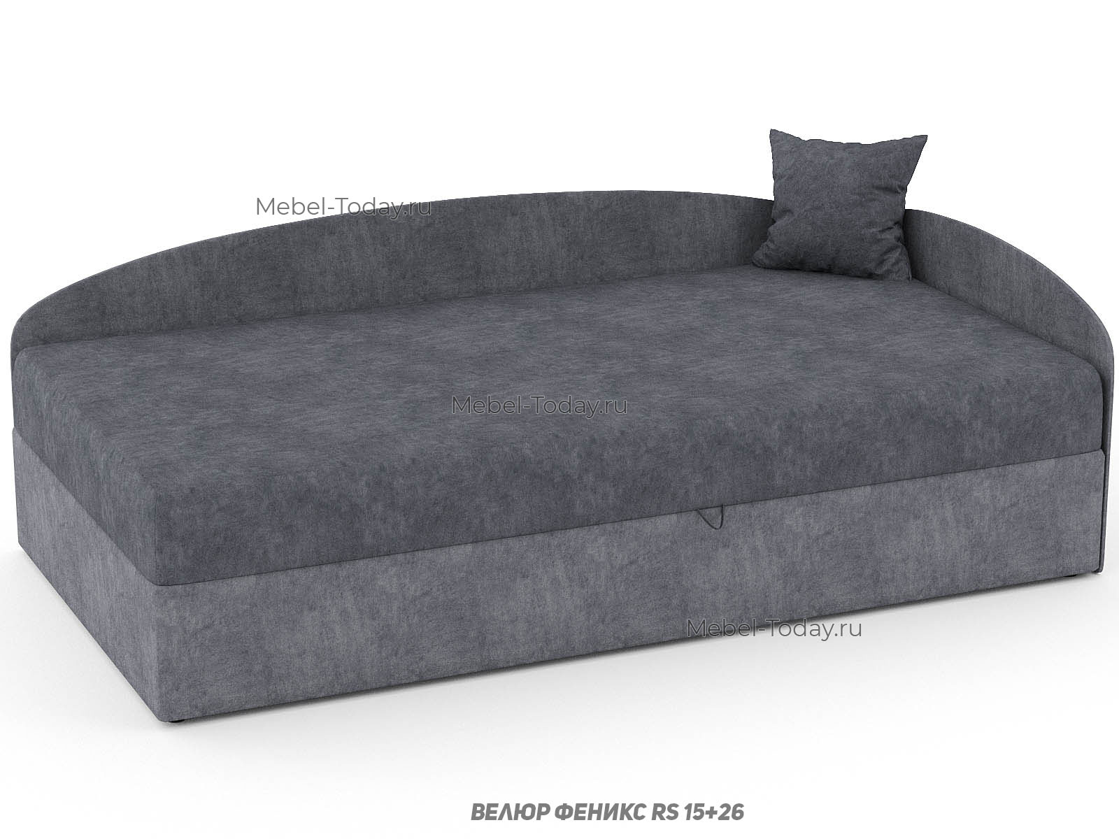 Тахта-кровать Кристина угловая с овальной спинкой, спальное место 100х190 см, обивка велюр, рогожка, плюш