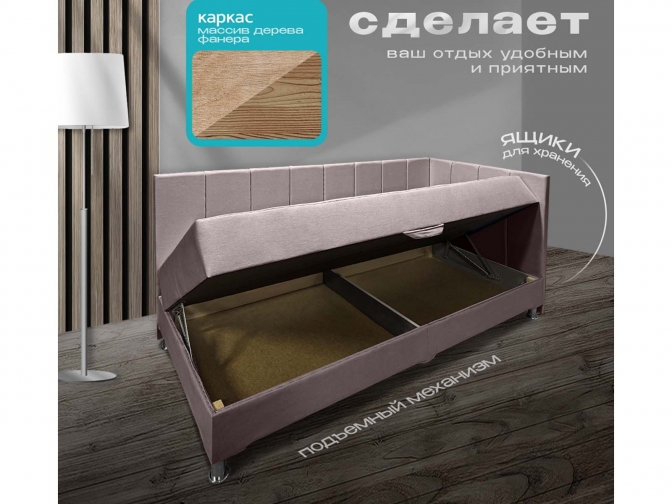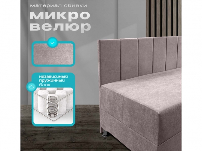 Диван тахта Олсен 4 угловая, с ящиком для белья, независимый пружинный блок, обивка велюр розовый