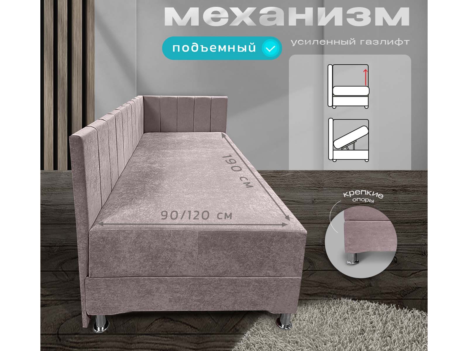 Механизм трансформации: тахта поднимается и удерживается