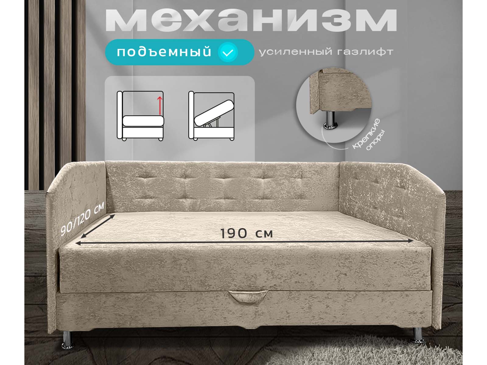 Механизм трансформации: тахта поднимается и удерживается