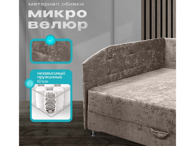 Диван тахта Олсен 4 угловая, с ящиком для белья, независимый пружинный блок, обивка велюр коричневый
