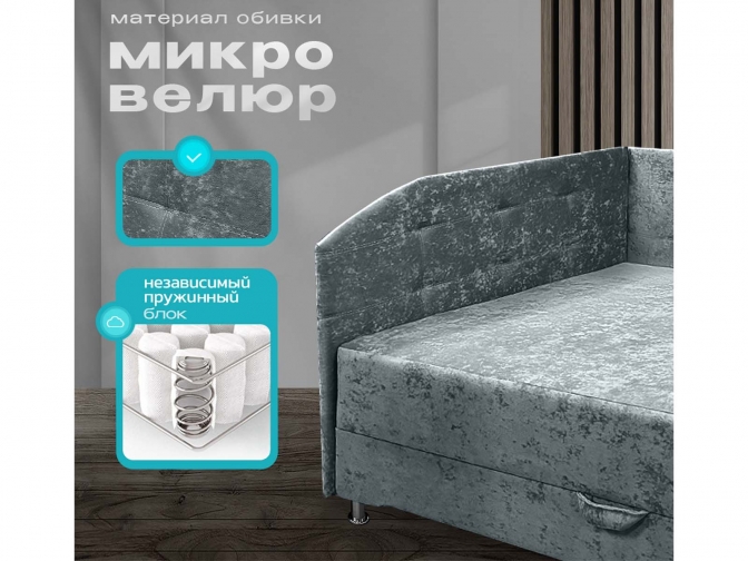Диван тахта Олсен 4 угловая, с ящиком для белья, независимый пружинный блок, обивка велюр зеленый