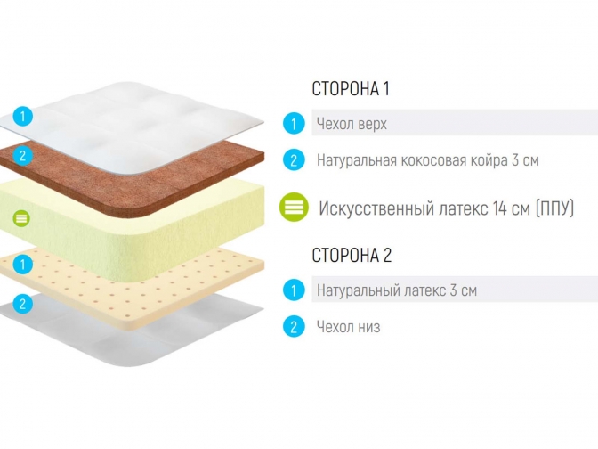 Матрас Lonax Foam Latex Cocos 3 (Лонакс Фоам латекс Кокос 3) - обеспечивает прекрасную анатомичность. Две стороны разной жесткости дарят возможность выбора и способствуют крепкому, здоровому сну с правильной поддержкой позвоночника.