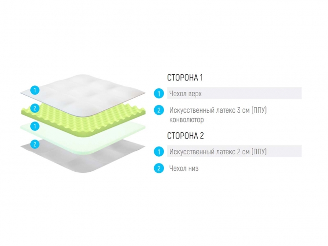 Чехол матраса выполнен из качественных материалов на выбор (см фото):