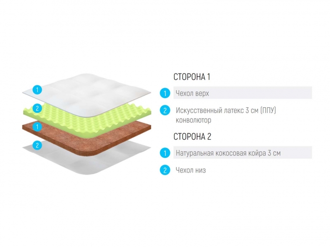 Топпер Lonax Relax ППУ Cocos 6 - наматрасник мягкий/жесткий Латекс/Койра, высота 6 см - практичное решение для вашего сна. Сторона с массажным пенополиуретаном помогает расслабиться, а кокосовая койра обеспечивает жесткую поддержку.