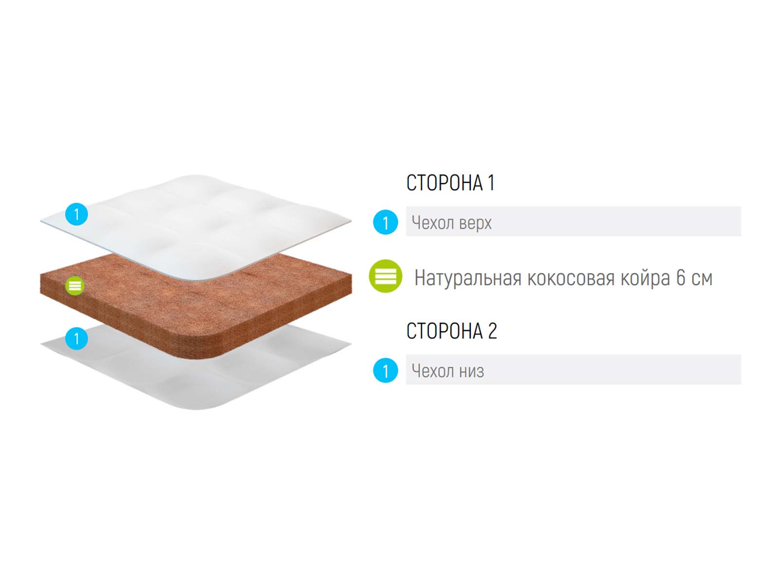 Топпер Lonax Cocos 6 - наматрасник жесткий натуральная кокосовая Койра, высота 6 см