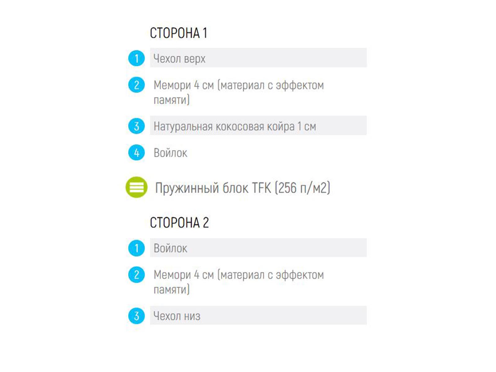 Матрас Denwir Classic Balance Memo TFK (Денвир Классик БалансМемо ТФК) - высокий матрас с двумя степенями комфорта. Умный материал с эффектом памяти и кокосовая койра в тандеме с независимыми пружинами обеспечивают индивидуальную поддержку и невероятное удобство для сна, подходящее большинству пользователей.