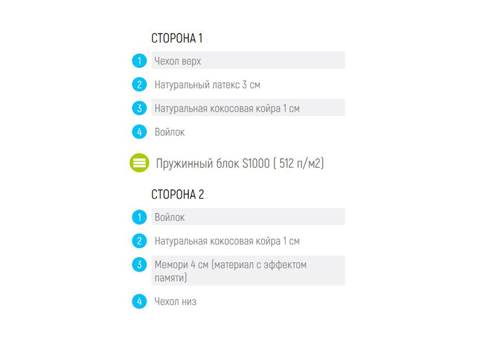 Матрас Denwir Classic Middle Memo Soft S1000 (Денвир Классик Мидл Мемо Софт С1000) - матрас премиум-класса для здоровья вашей спины. Усиленный пружинный блок в тандеме с натуральным латексом, кокосом и пеной с эффектом памяти обеспечивает анатомически правильную поддержку и максимальный комфорт для полноценного восстановления сил во сне.