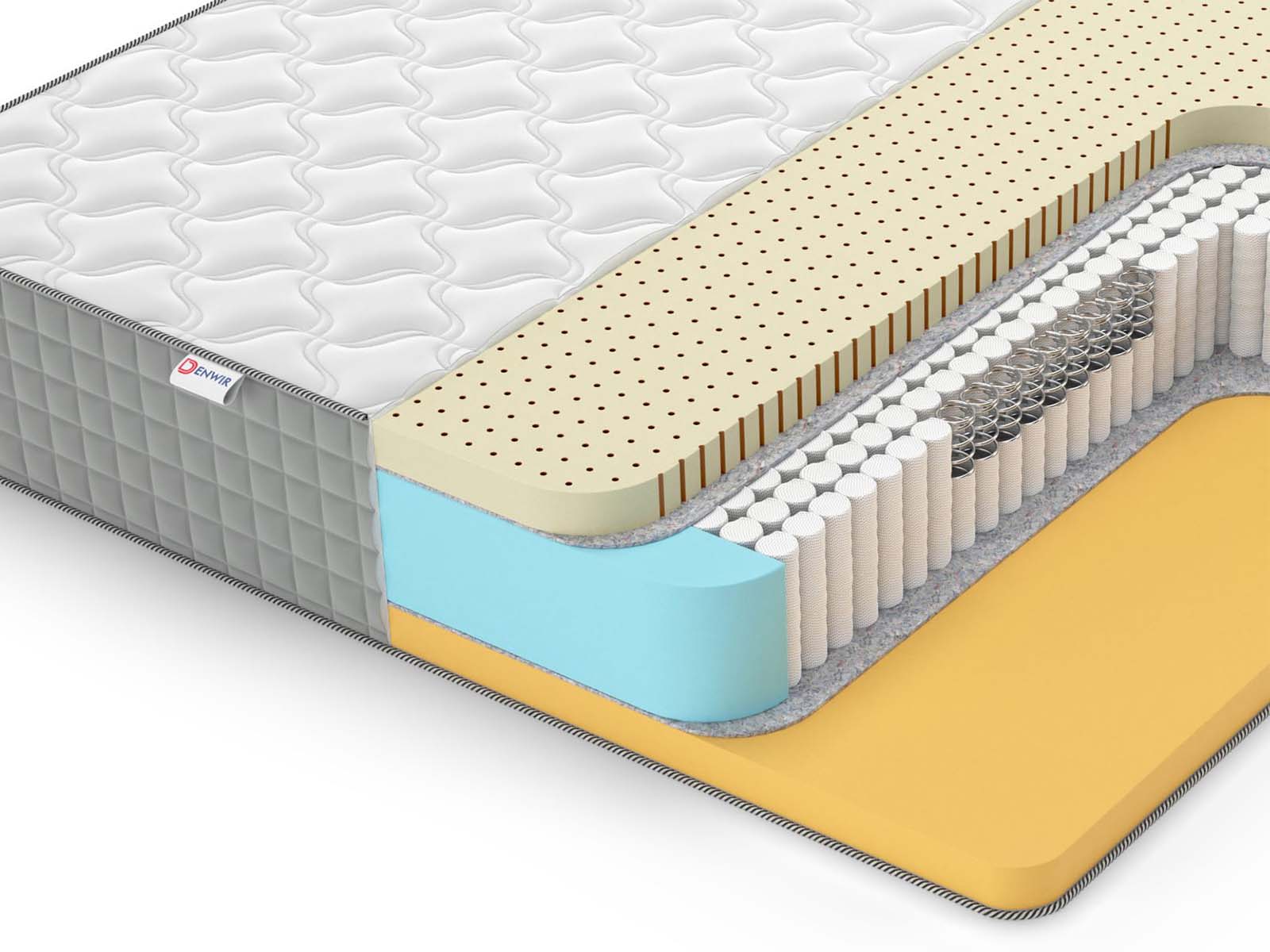 Матрас Denwir Extra Memo Soft S1000 (Денвир Экстра Мемо Софт С1000) - Инновационный матрас с двойным комфортом: сочетание натурального латекса и пены с эффектом памяти формирует умную поверхность, точно повторяющую изгибы тела. Усиленная система независимых пружин обеспечивает точечное распределение нагрузки, а трикотажный чехол с холконовой стежкой завершает эргономичную конструкцию.