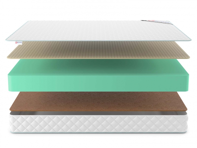 Матрас Denwir Simpl Hard Soft 20 (Денвир Симпл Хард Софт 20) - Два матраса в одном: конструкция объединяет жесткую сторону с кокосовой койрой и мягкую зону с натуральным латексом на основе искусственного латекса. Оптимальная высота и устойчивость к нагрузкам позволяют использовать модель как основное спальное место с адаптируемым комфортом.