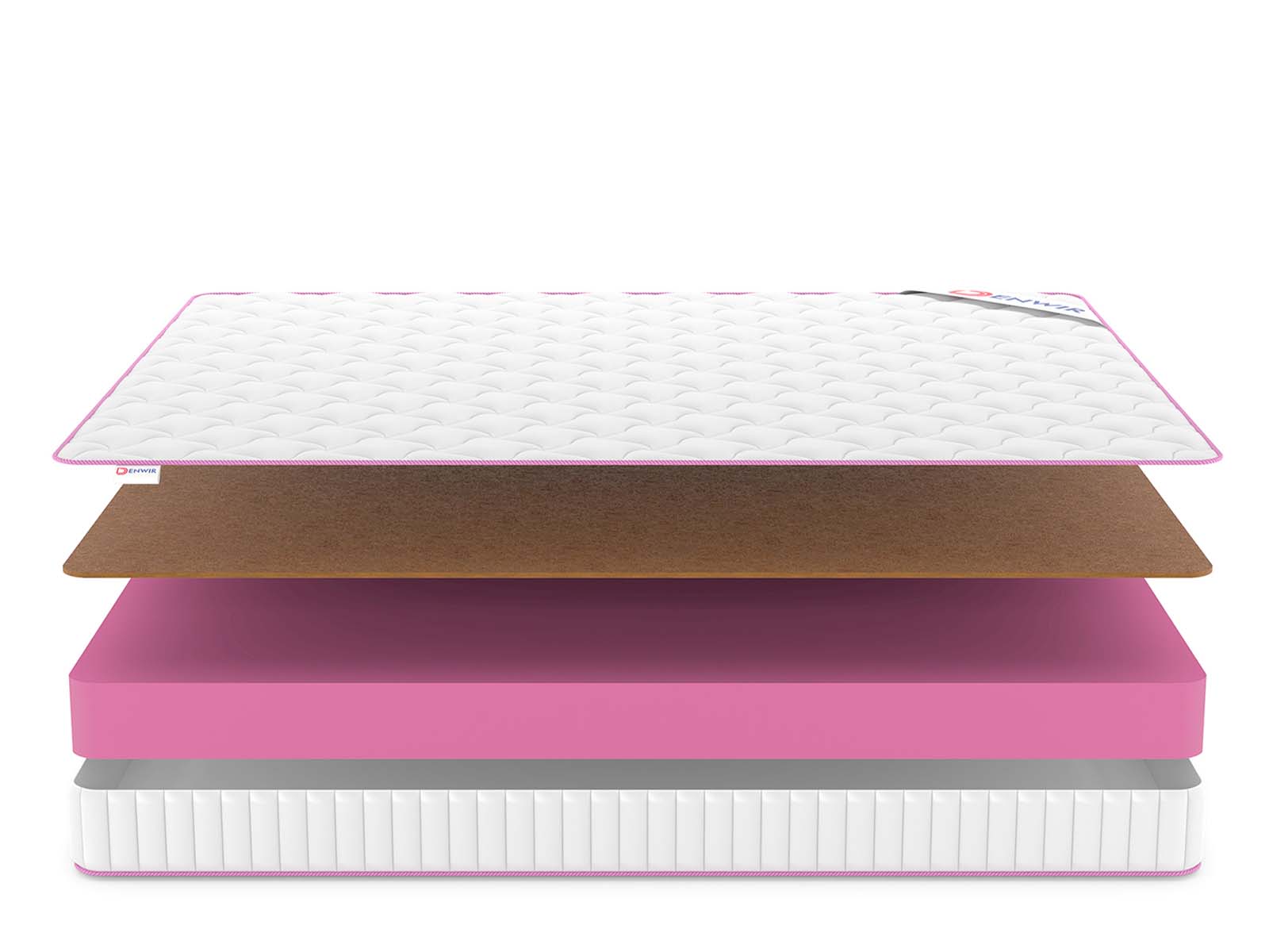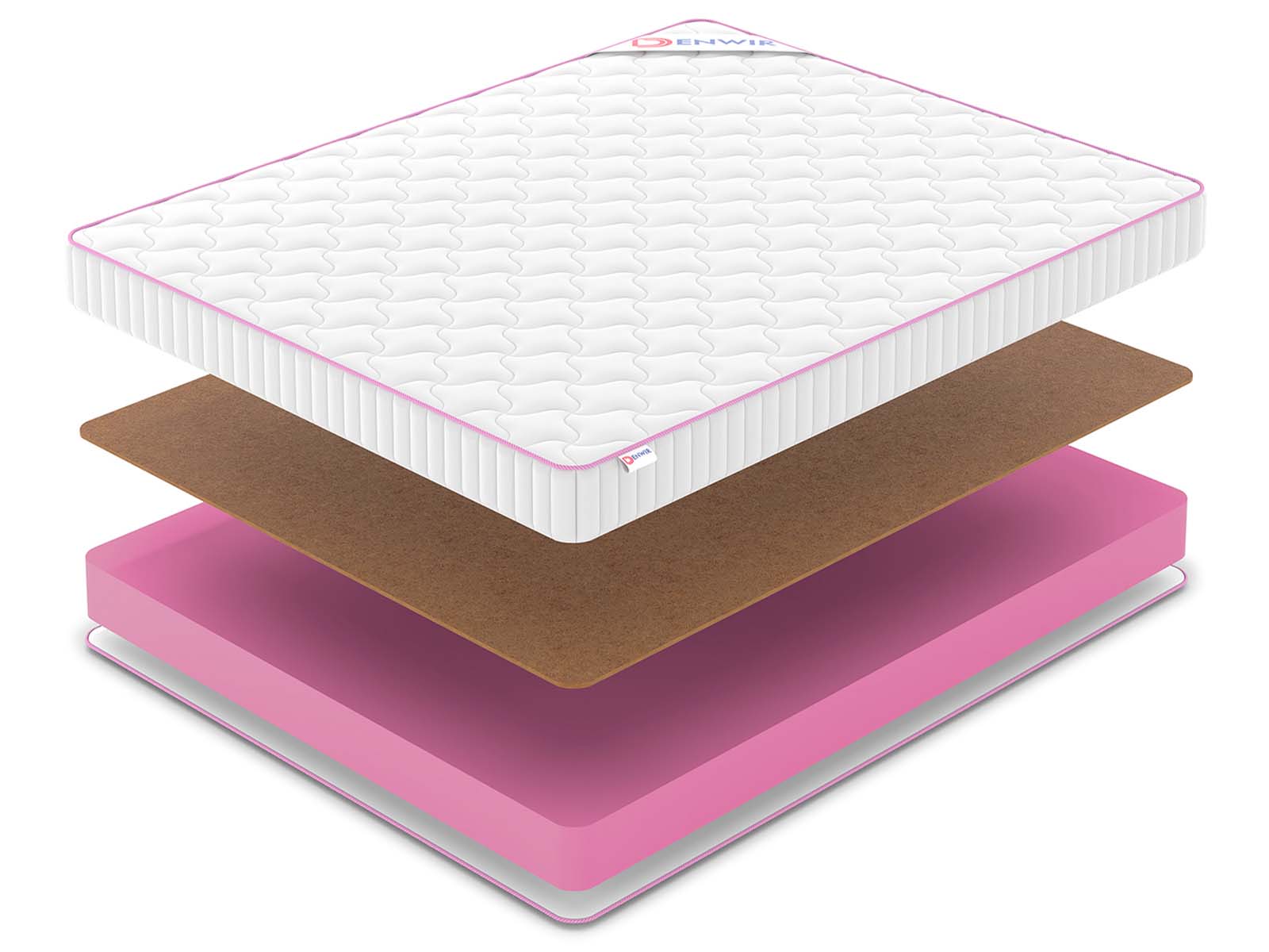 Матрас Denwir Mega Foam Hard 15 (Денвир Мега Фоам Хард 15) - Жесткость с характером: матрас объединяет высокотехнологичную пену и натуральную кокосовую койру для надежной поддержки. Дизайнерский чехол с объемной стежкой и розовым кантом добавляет стиля, а компактная упаковка в рулон делает модель практичным выбором для современного дома.
