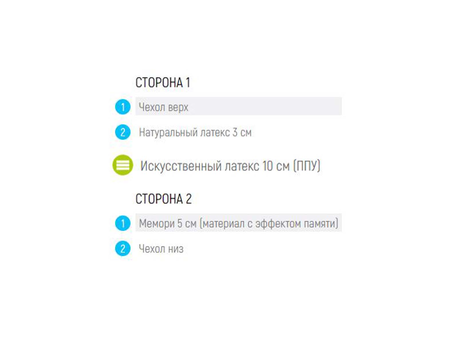Матрас Denwir Mega Memo Soft 18 (Денвир Мега Мемо Софт 18) - Матрас с трехслойной структурой и двойной жесткостью. Комбинация материала памяти, натурального и искусственного латекса создает адаптивную поверхность. Трикотажный чехол с простроченным кантом добавляет тактильного комфорта и сохраняет форму изделия.