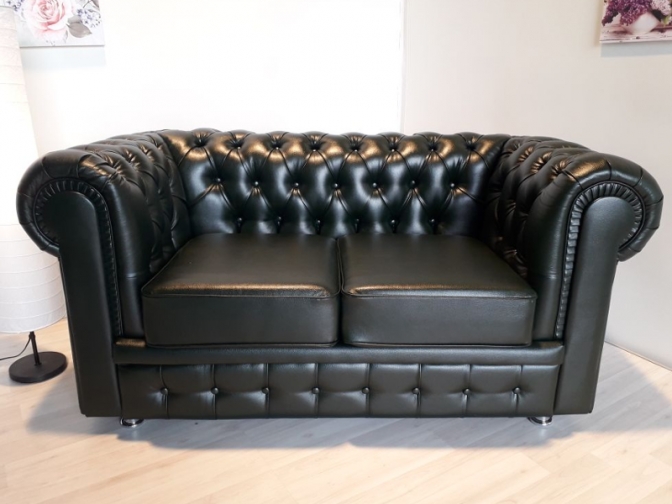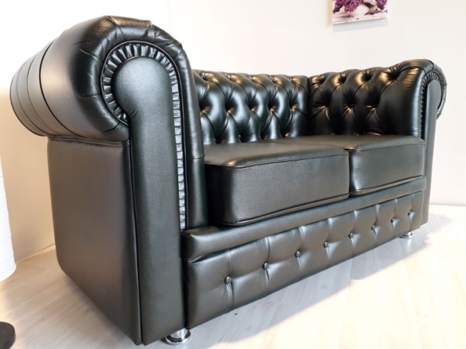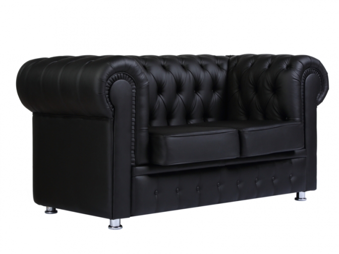 Диван Честер 2-х местный черный подчеркнет солидность и элегантность обстановки офиса. Широкий нераскладной диван с беспружинным наполнителем ППУ отличается широкими скругленными подлокотниками и упругой спинкой, в качестве сиденья использованы две широкие и очень удобные подушки. Обивка из экокожи отличается стильным внешним видом, для декора дивана использована каретная обтяжка.