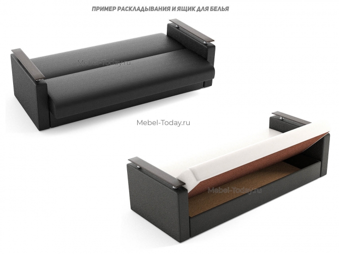 Диван книжка Шарк офисный с деревянными накладками на подлокотниках МДФ