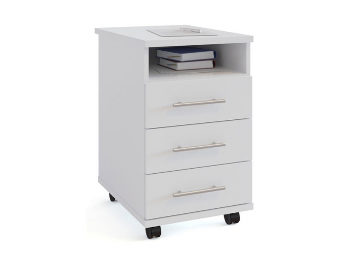 Тумба КТ-12 подойдет как для офиса, так и для дома. Она оснащена тремя выдвижными ящиками, которые способны вместить немало вещей. Кроме того, под крышкой данной модели располагается большое открытое отделение. Тумба устанавливается на качественные колесики. Они позволяют передвигать конструкцию и защищают пол от повреждений.