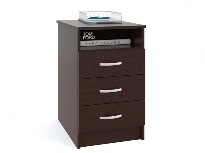 Тумба КТ-14 совмещает в себе элегантность и практичность. Данная конструкция изготовлена из ламинированной древесно-стружечной плиты, благодаря чему прослужит много лет. Тумба состоит из верхней открытой полки и трех выдвижных ящиков. Это позволит расположить и вещи, которые не должно быть видно посторонним, и предметы, которые служат украшением на видном месте. Все ящики оснащены широкими удобными ручками.