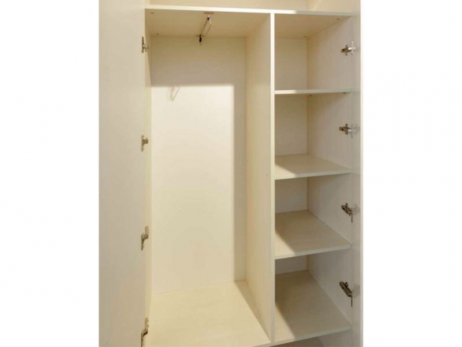 Внутри 6ть полок и отделение для плечиков с одеждой.