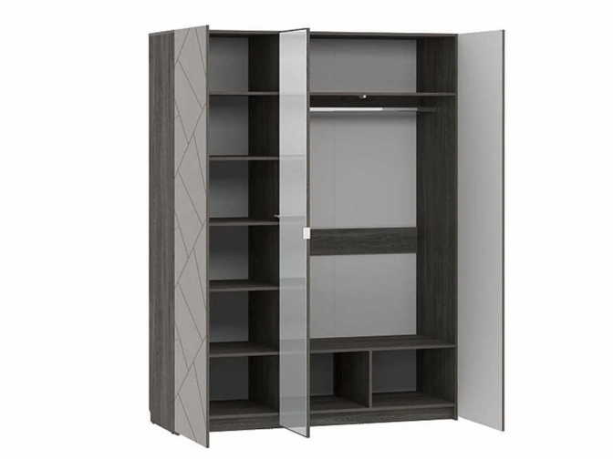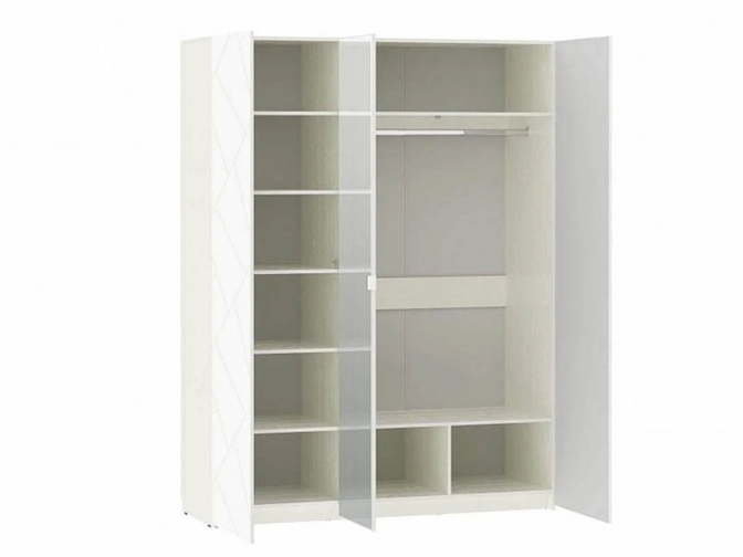 Конструкция с 2-я глухими и 1-й зеркальной дверью. Внутри две секции, с полками и штангой.