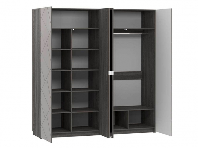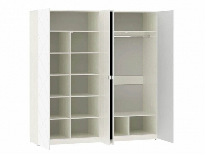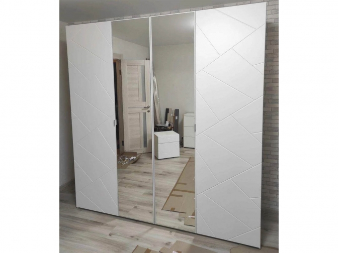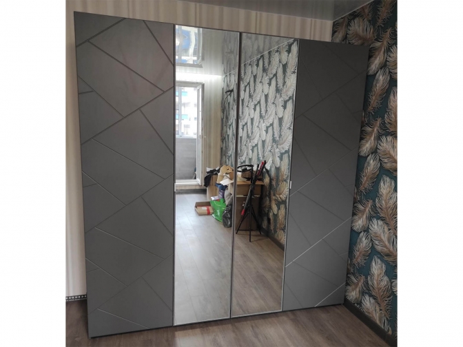 Конструкция с 2-я глухими и 2-я зеркальными дверцами. Внутри две секции, с полками и штангой.