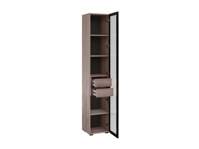 Шкаф-витрина Роквуд 16.322.04 - элегантное решение для современной гостиной. Стеклянная дверца подчеркнёт стиль интерьера, а внутри вас ждут 5 полок и 2 выдвижных ящика для удобного хранения и демонстрации любимых вещей.