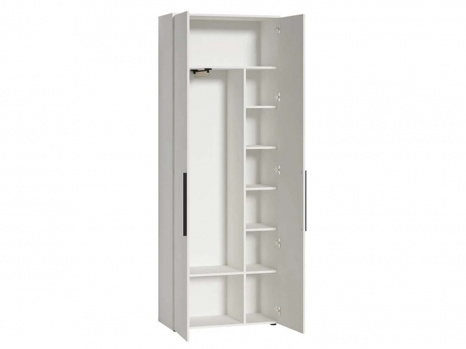 Шкаф Эйр 13.340 Белый - с двумя секциями и глухими дверцами предлагает удобную организацию хранения: гардеробную полку, вешалку и отделение с полками. Идеальное сочетание функциональности и стиля для любого интерьера.