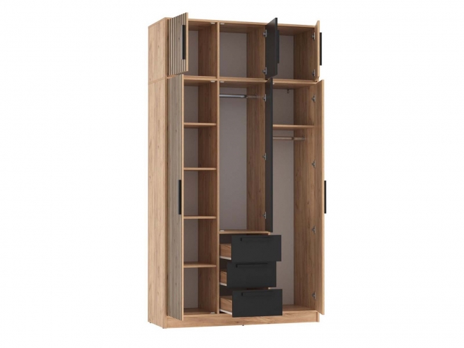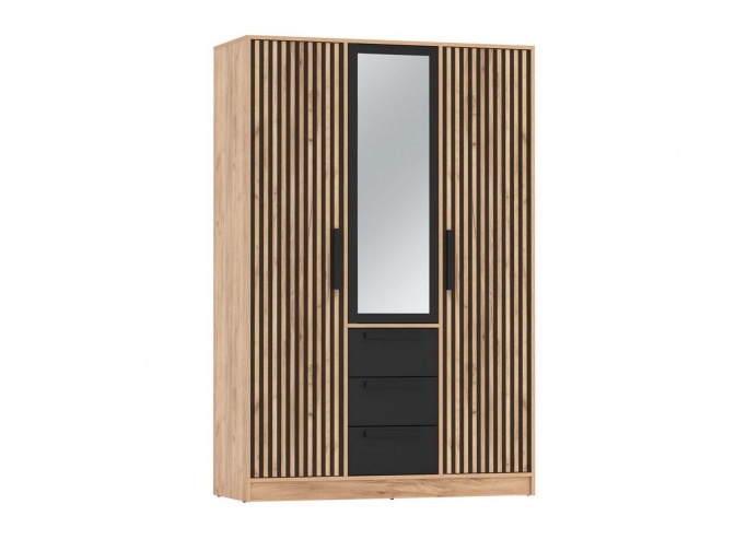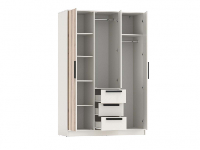 Шкаф для одежды Вегас 83.08 - компактный и функциональный вариант для хранения. Три дверцы (центральная — зеркальная) открывают доступ к полкам, штанге для вешалок. Так же в центральной части расположены три выдвижных ящика.
