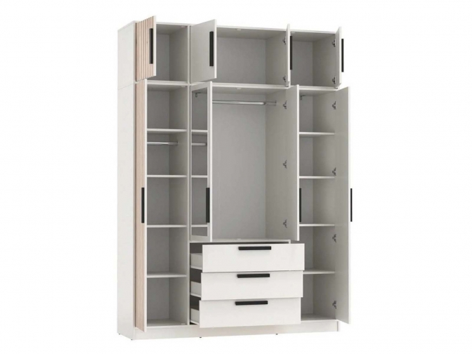 Шкаф для одежды Вегас 83.07 + Тумба Вегас 83.10 - удобное и стильное решение для хранения. 4 дверцы (2 центральные с зеркалами) скрывают продуманное внутреннее пространство: полки, штангу для вешалок. Так же есть 3 выдвижных ящика для мелочей. Шкаф дополнен тумбой, которая обеспечивает ещё больше места для хранения.