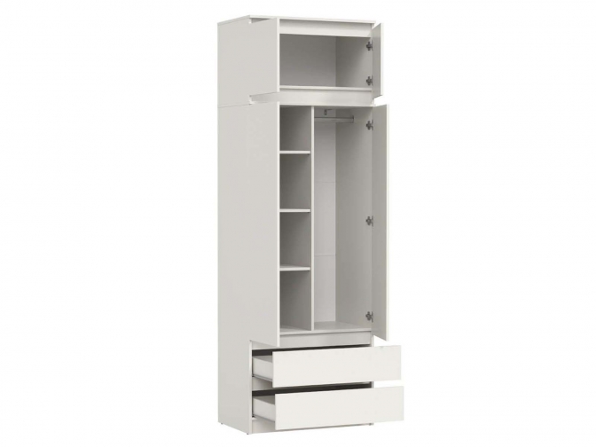 Шкаф для одежды Берген 82.03 + Тумба Берген 82.06 Белый - это стильный и функциональный гарнитур для организации пространства. Конструкция состоит из шкафа с практичной антресолью, обеспечивающей дополнительное место для хранения. Внутреннее пространство оборудовано секцией с горизонтальной штангой для размещения одежды на плечиках. В нижней части системы расположены два удобных выдвижных ящика для хранения аксессуаров и мелких вещей.