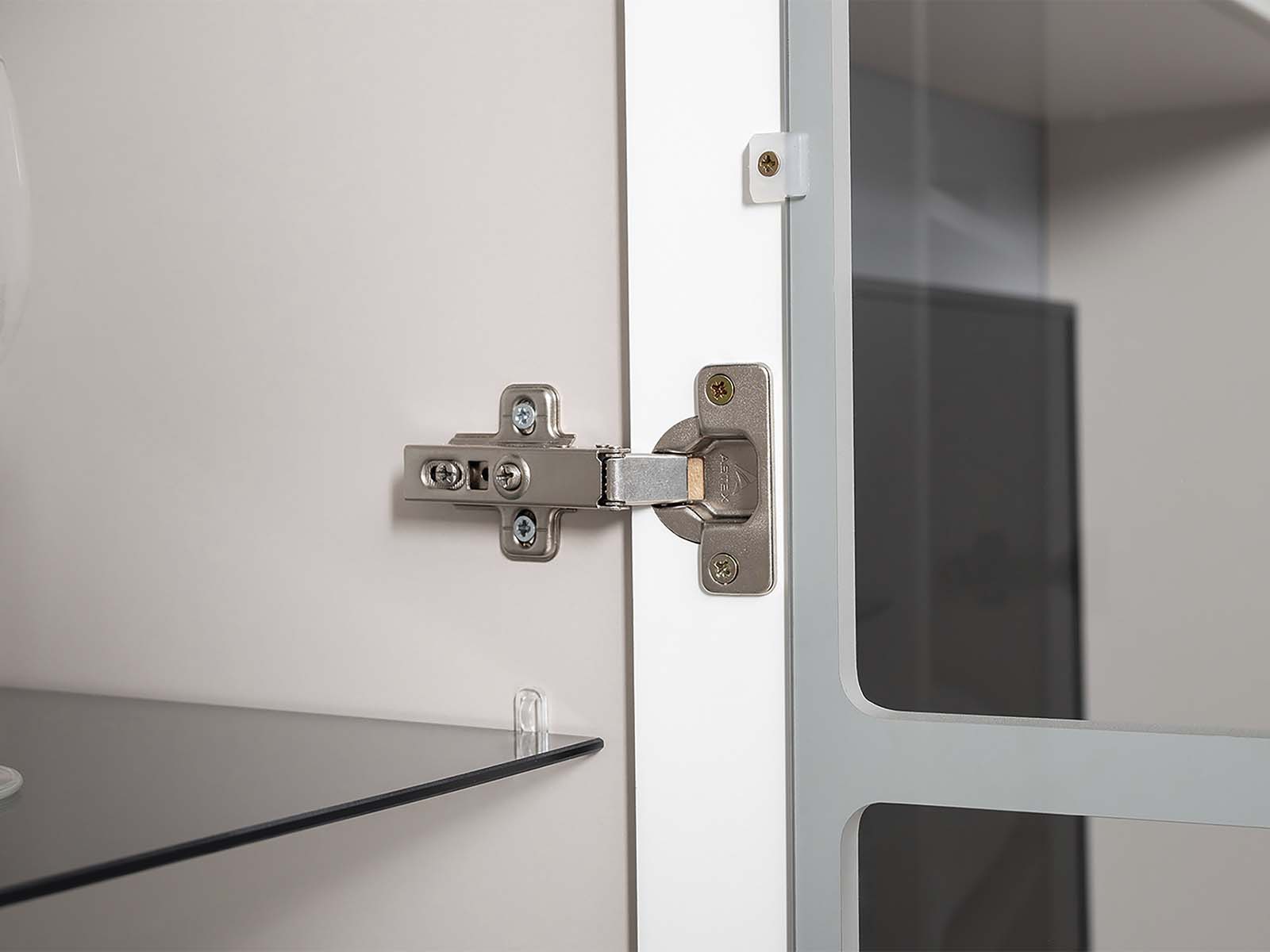 Шкаф-витрина Ричфорд 16.396 - Коллекция «Ричфорд» воплощает современную классику, где каждая деталь продумана для вашего комфорта. Фрезерованные фасады из МДФ в сочетании с металлическими ручками и тонированными стеклянными витринами создают элегантный облик. А умные решения — доводчики, система полного выдвижения ящиков, выдвижная штанга для одежды и регулируемые полки — делают организацию пространства невероятно удобной.