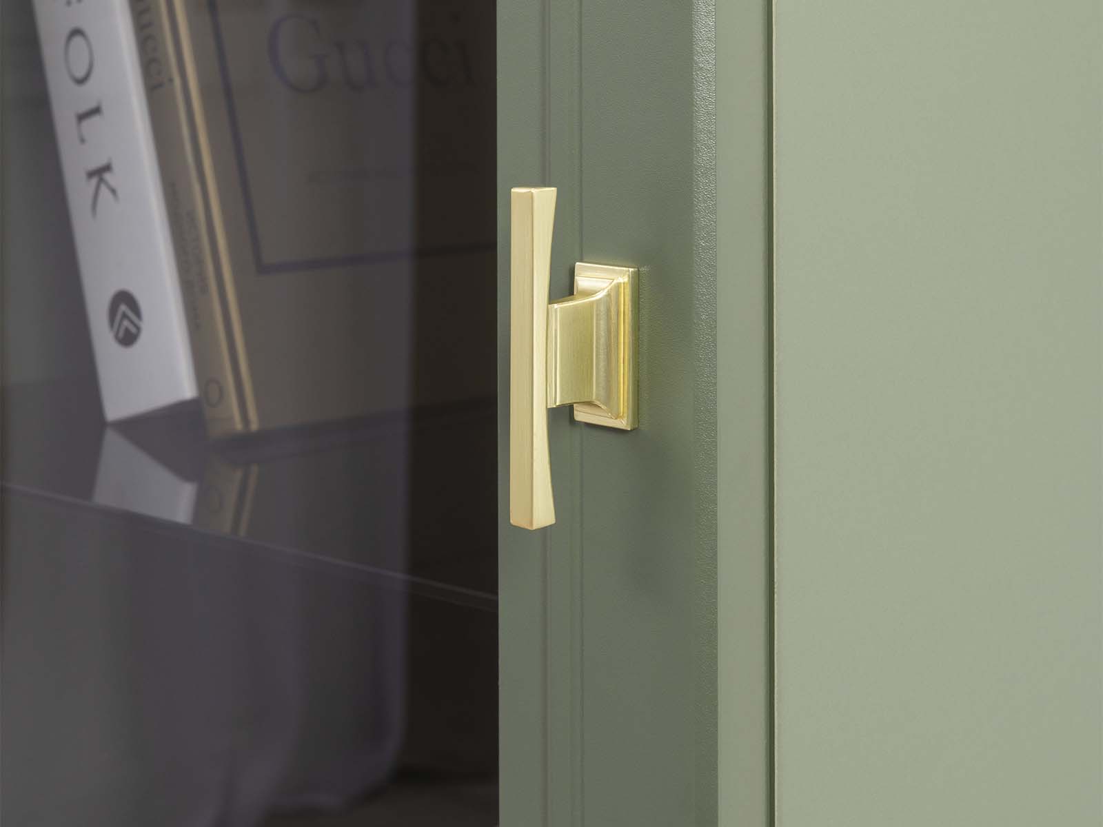Шкаф навесной Марион 16.397.01 Дымчатый зеленый/Олива шагрень - Идеальный порядок за стеклом и деревом. Шкаф-витрина «Марион» сочетает закрытое хранение и открытую презентацию. Вместительные полки, продуманная конструкция и стильная металлическая фурнитура делают его практичным и визуально легким элементом для современного дома.
