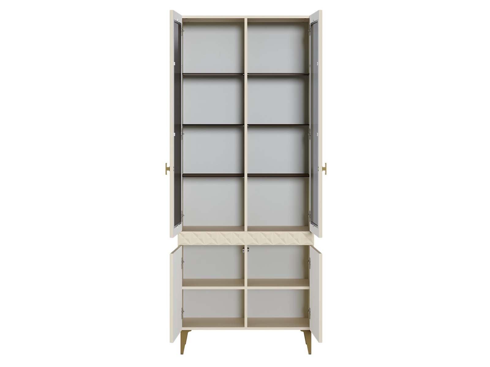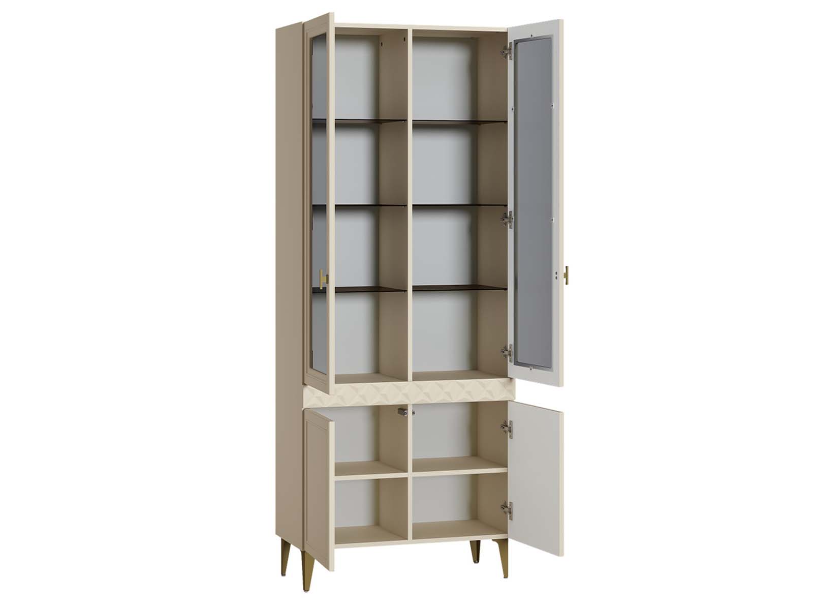 Шкаф навесной Марион 16.397.02 Слоновая кость - Шкаф-витрина с чёткой архитектурой. Четыре секции с глухими и остеклёнными дверцами обеспечивают гибкую организацию пространства. Металлическая фурнитура и точные линии подчёркивают современный характер модели, идеальной для систематичного хранения и эффектной презентации коллекций.