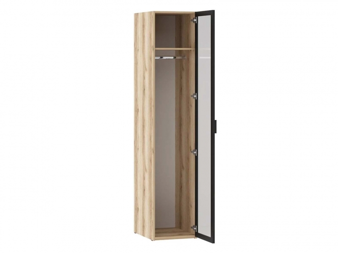 Шкаф-витрина Арден 200.02 - Шкаф для одежды «Арден» объединяет штангу для вешалок и полку за стеклянной дверцей в алюминиевой раме. Этот вариант хранения экономит пространство, сохраняет вещи в порядке и добавляет интерьеру современной эстетики.